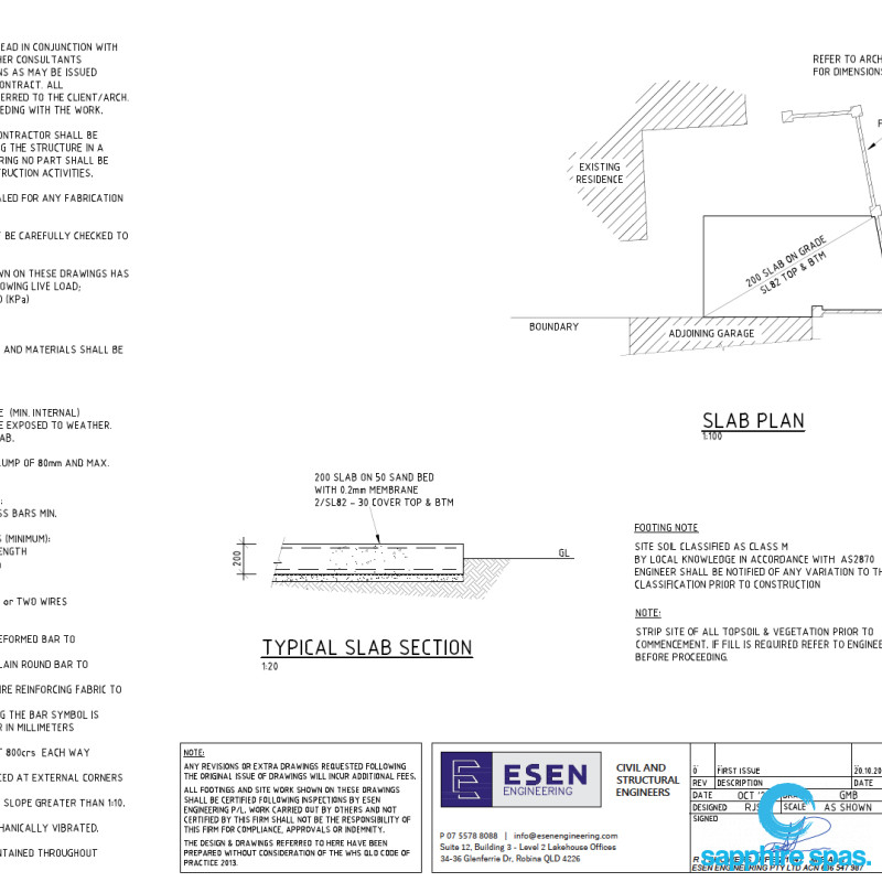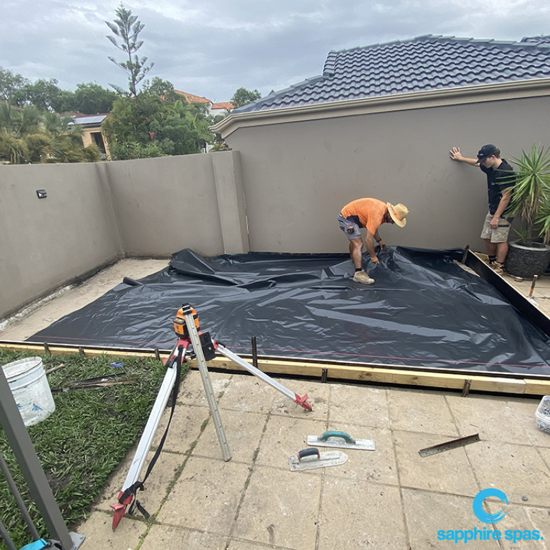 The starting point for any project is planning, having already visited Sapphire Spas and selected their preferred spa the next step for the customer was to get planning approval from council. What planning you require can vary depending on your state and council. The client engaged a local construction engineer to assist with designing a compliant slab and producing technical drawings to the council’s required standard. In this instance the application was in order and approval was granted for the project.
