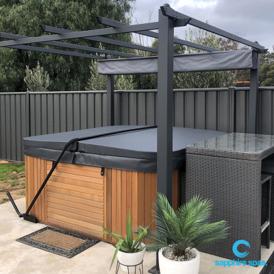 Spa pool protected by a pergola thanks to the team at Wrights Pool & Spa…