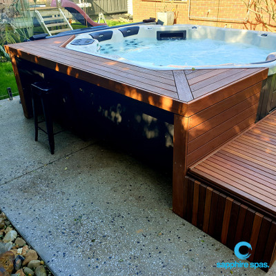 myParadisePREMIUM spa pool in a beautifully designed merbau deck installed by the Dan & the…