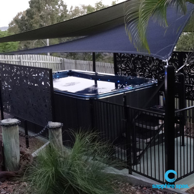 Watch the path of the sun at various times throughout the day, before you decide on a shade cover. You'll realise that the sunlight and shadows are cast onto various facets of your spa and UV exposure creeps through even narrow gaps in protection from above. You may like to extend the shade structure past the physical size of your spa to allow for lower winter sun and also the still hot setting sun throughout the summer months.