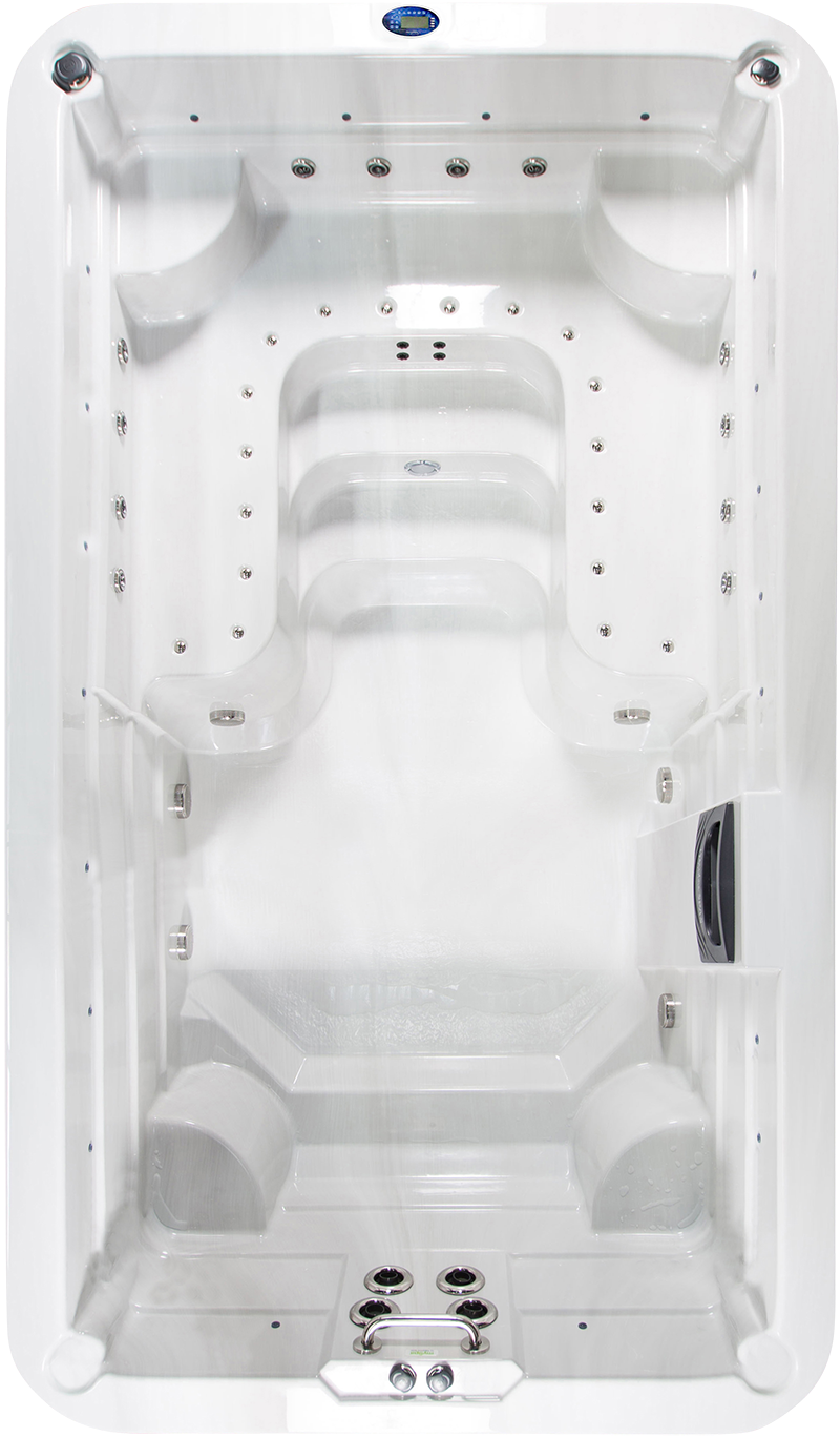 The myWatersedge 4.0m swim spa boasts a spacious, open bench seat at the rear of the spa, equipped with a sufficient number of jets to create a soothing environment without generating excessive turbulence. Catering to fitness enthusiasts with its versatile jet system and also those of you who'd prefer a gentle aquatherapy session, this swim spa model is one of our most popular.